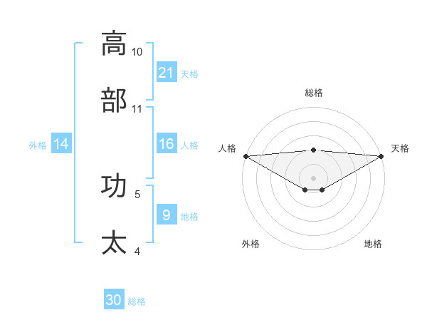 高部 功太さんの総格は30画の2点!