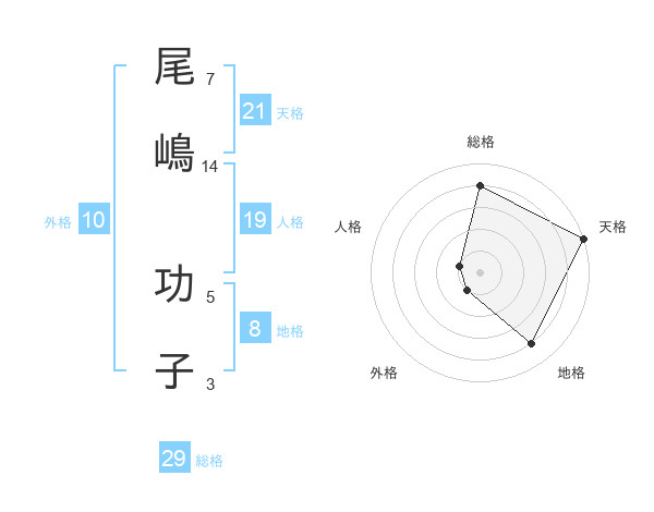 尾嶋 功子さんの総格は29画の4点!