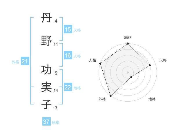 丹野 功実子さんの総格は37画の5点!