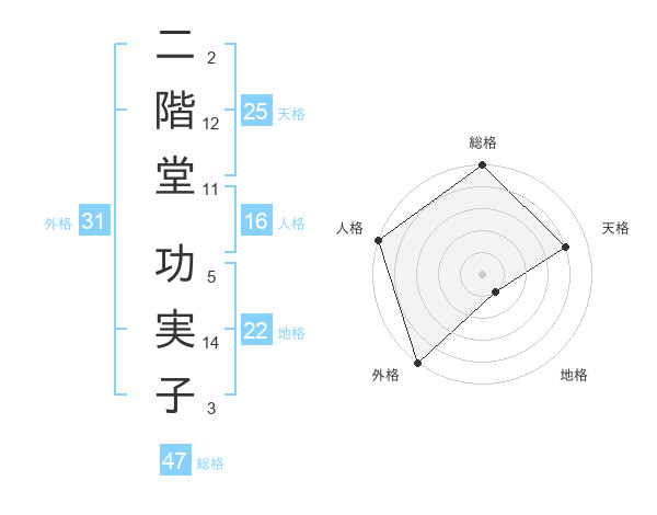 二階堂 功実子さんの総格は47画の5点!