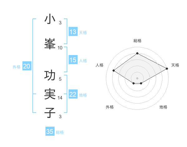 小峯 功実子さんの天格は13画の5点!