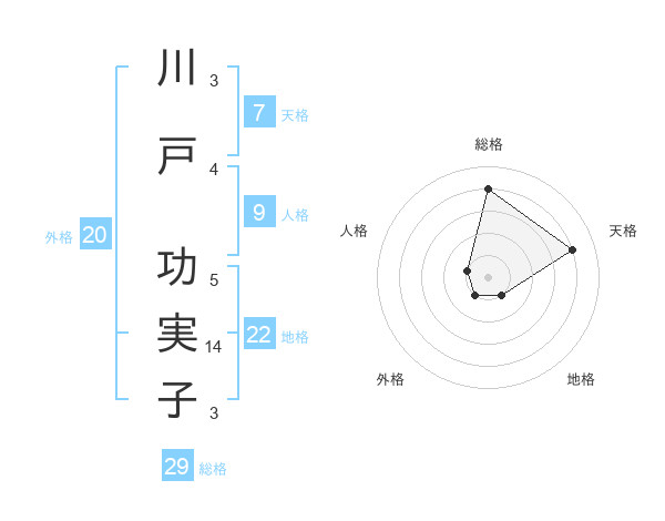 川戸 功実子さんの総格は29画の4点!