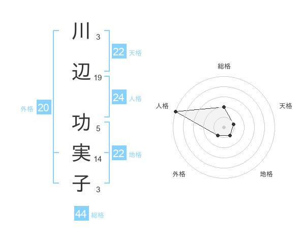 川辺 功実子さんを姓名の画数から五運を鑑定