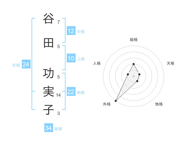 谷田 功実子さんを姓名の画数から五運を鑑定
