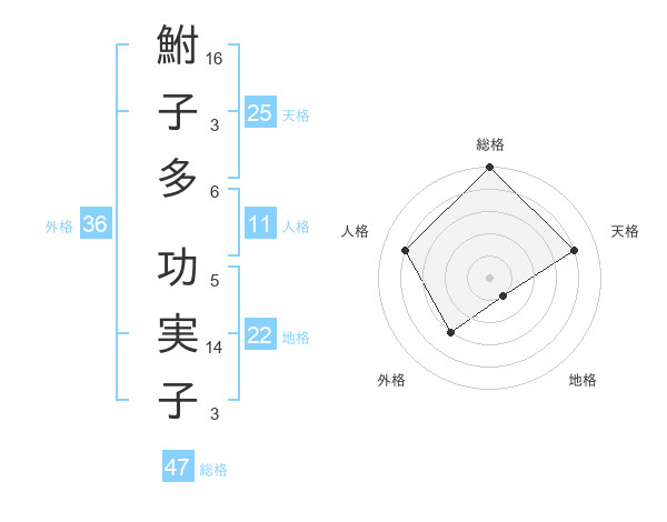 鮒子多 功実子さんを姓名の画数から五運を鑑定