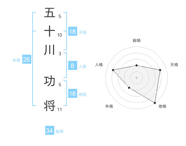 五十川 功将さんの天格は18画の4点!