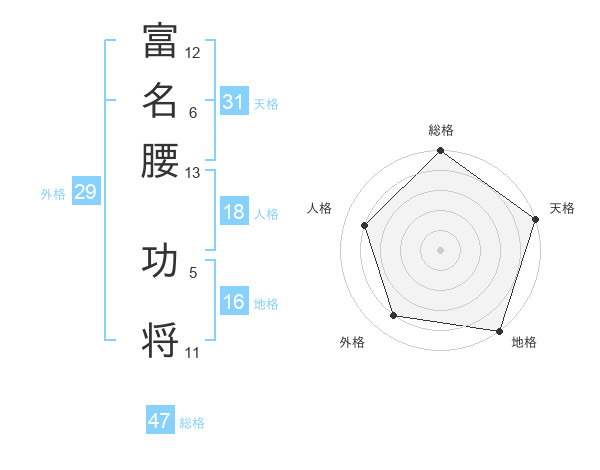 富名腰 功将さんを姓名の画数から五運を鑑定