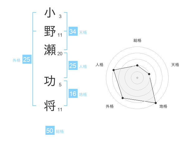 小野瀬 功将さんを姓名の画数から五運を鑑定