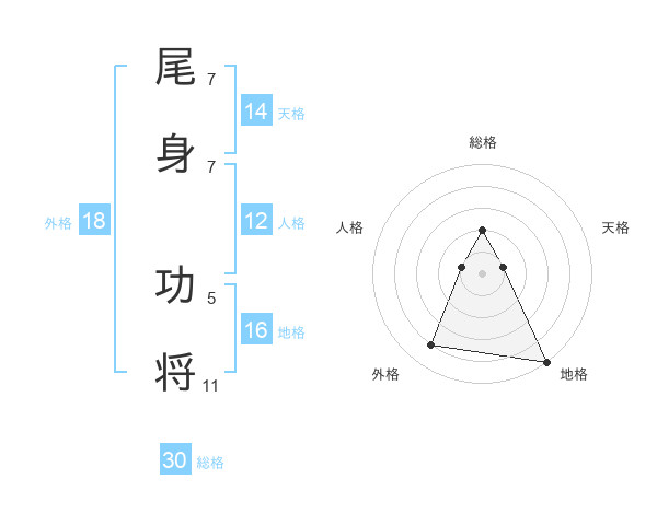 尾身 功将さんの総格は30画の2点!