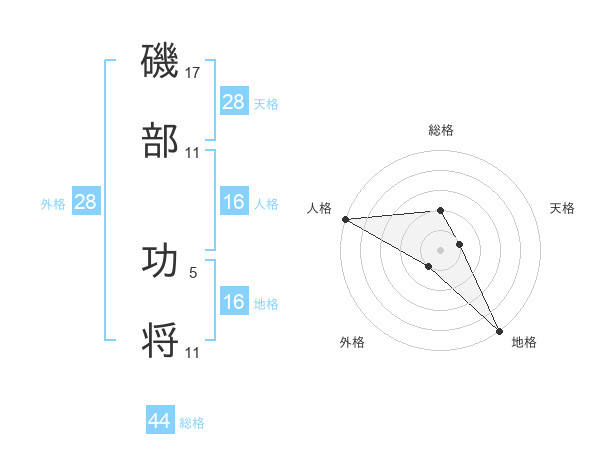 磯部 功将さんの地格は16画の5点!