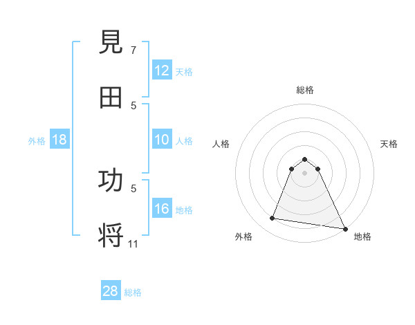 見田 功将さんの総格は28画の1点!
