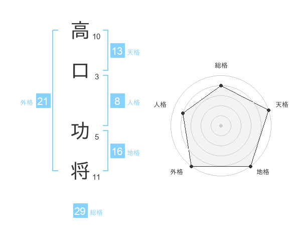高口 功将さんの総格は29画の4点!