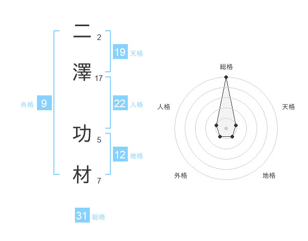 二澤 功材さんの総格は31画の5点!