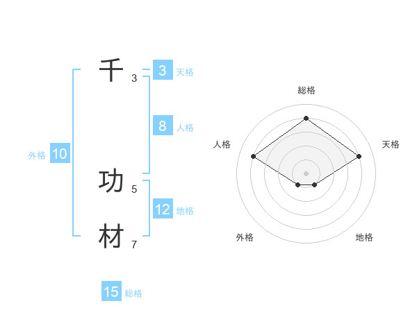 千 功材さんの総格は15画の4点!