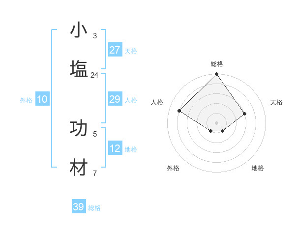 小塩 功材さんの総格は39画の5点!