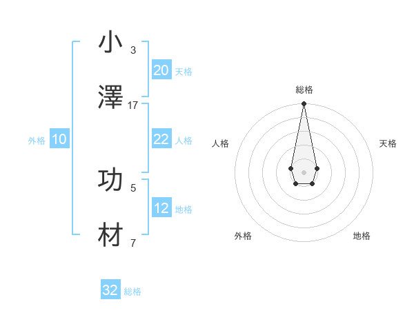 小澤 功材さんの総格は32画の5点!