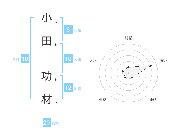 小田 功材さんの天格は8画の4点!