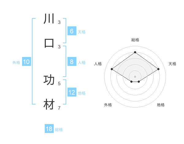 川口 功材さんの総格は18画の4点!