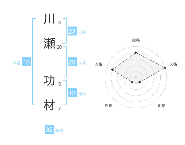川瀬 功材さんの総格は35画の4点!
