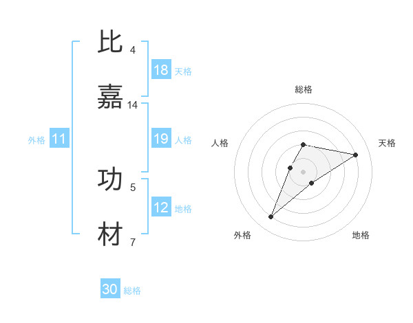 比嘉 功材さんの総格は30画の2点!