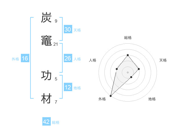 炭竈 功材さんの総格は42画の3点!