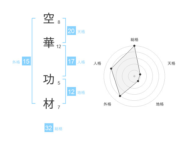 空華 功材さんの総格は32画の5点!