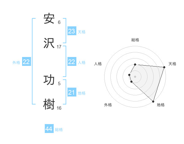 安沢 功樹さんを姓名の画数から五運を鑑定