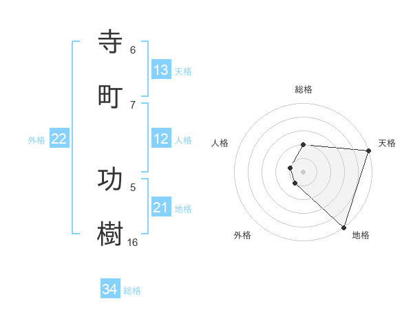 寺町 功樹さんの天格は13画の5点!