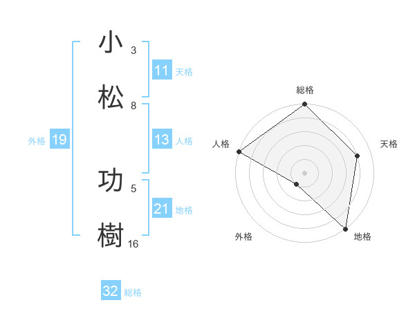 小松 功樹さんの総格は32画の5点!