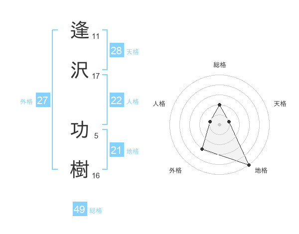 逢沢 功樹さんを姓名の画数から五運を鑑定