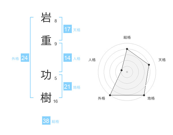 岩重 功樹さんの総格は38画の4点!