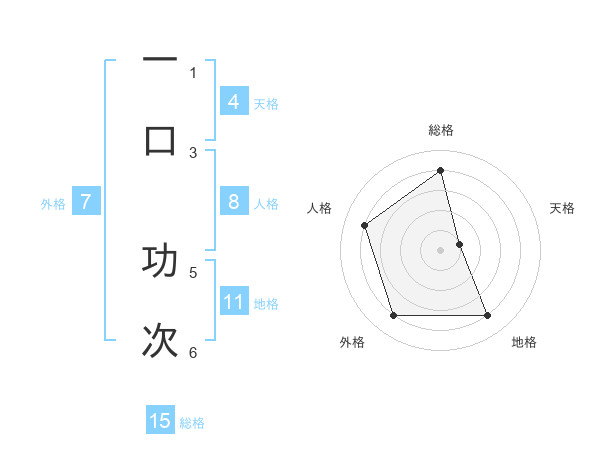 一口 功次さんの総格は15画の4点!