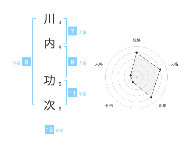 川内 功次さんの天格は7画の4点!