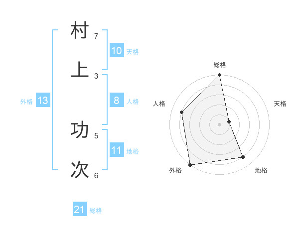 村上 功次さんの総格は21画の5点!