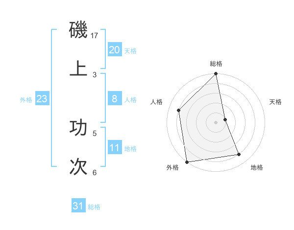 磯上 功次さんの総格は31画の5点!