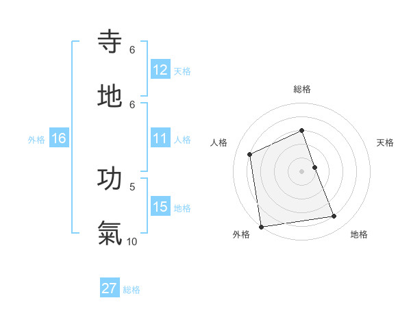寺地 功氣さんの総格は27画の3点!