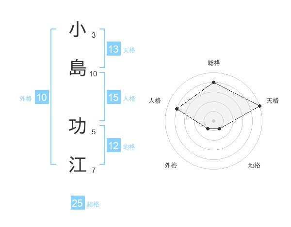 小島 功江さんの総格は25画の4点!
