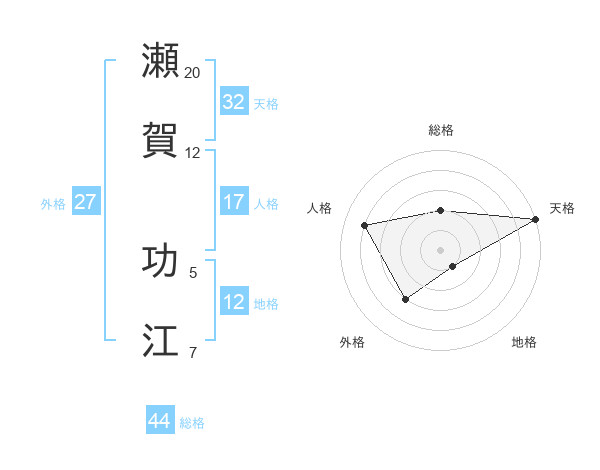 瀬賀 功江さんの天格は32画の5点!