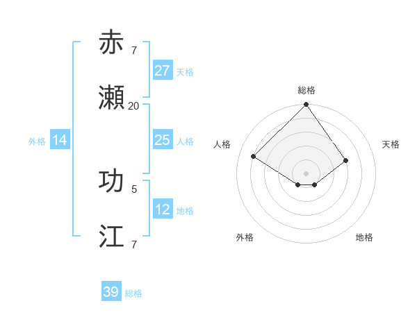 赤瀬 功江さんを姓名の画数から五運を鑑定