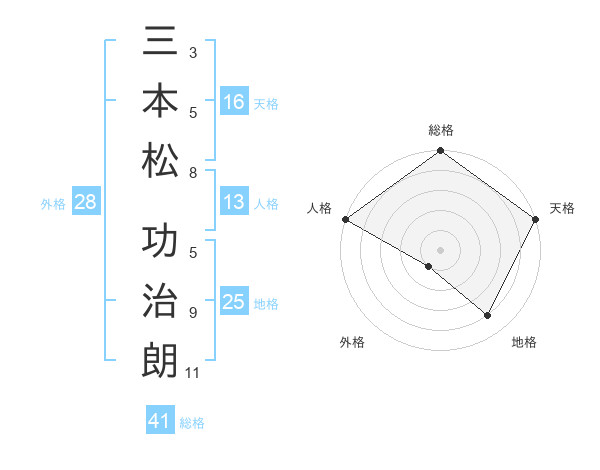 三本松 功治朗さんの総格は41画の5点!