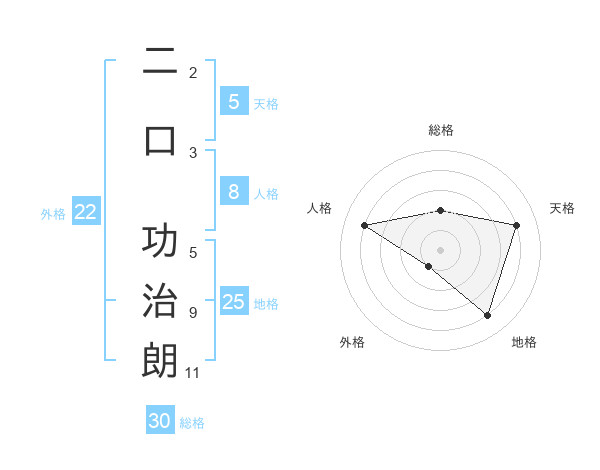 二口 功治朗さんを姓名の画数から五運を鑑定