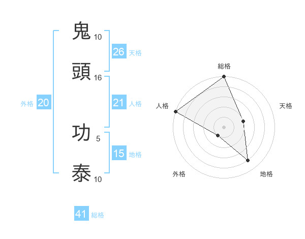 鬼頭 功泰さんの外格は20画の1点!