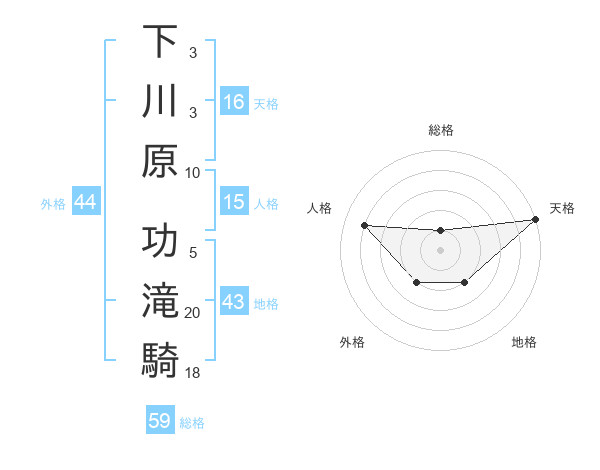 下川原 功滝騎さんの地格は43画の2点!