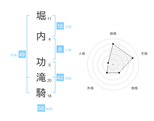 堀内 功滝騎さんの総格は58画の4点!