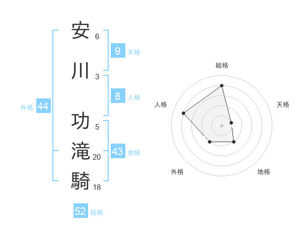 安川 功滝騎さんを姓名の画数から五運を鑑定