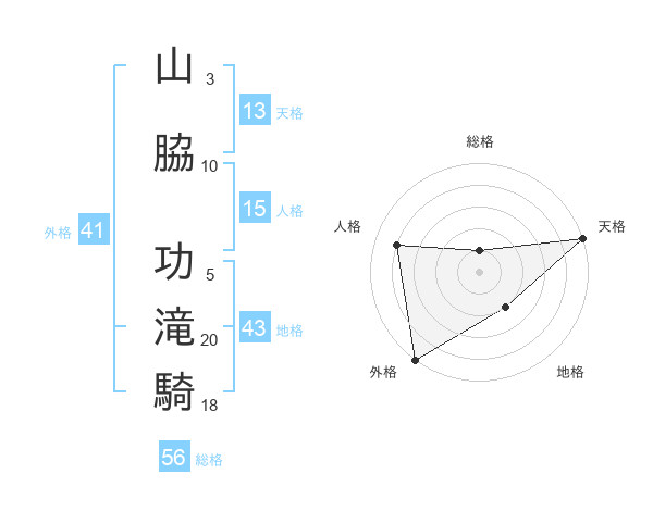 山脇 功滝騎さんの天格は13画の5点!