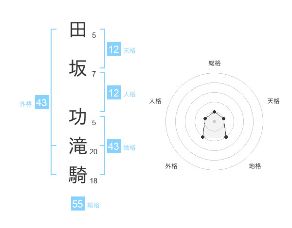 田坂 功滝騎さんの総格は55画の1点!