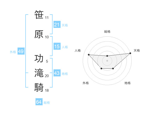 笹原 功滝騎さんの総格は64画の1点!
