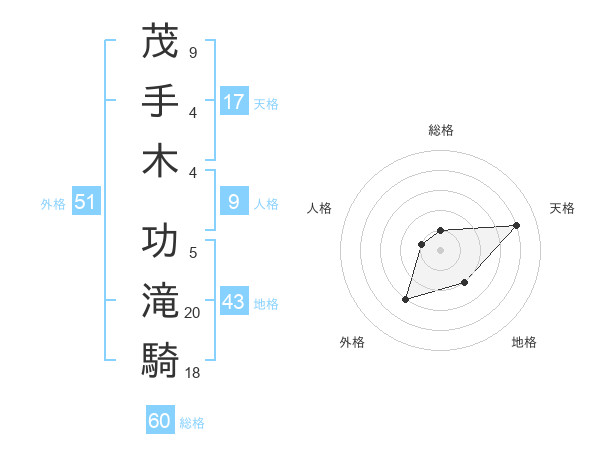 茂手木 功滝騎さんの総格は60画の1点!
