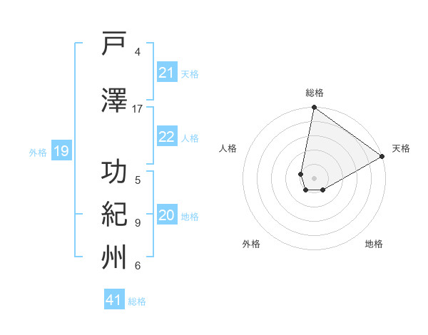 戸澤 功紀州さんの天格は21画の5点!